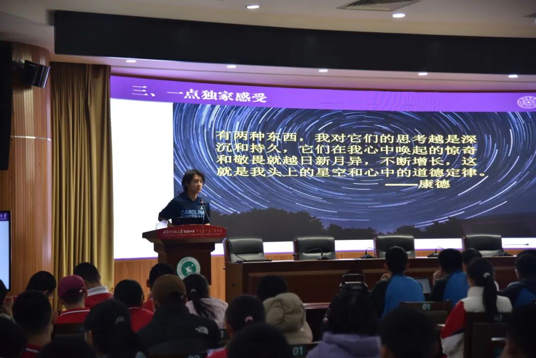 讲座的进行过程让我惊讶与感动。看到来自自治区的同学们时,我发现他们有些脸颊上泛着来自大自然的腮红,有些留着标准的却又很久未见的寸头,有些皮肤黝黑但透露着健康与天性,最多的,是每一个人脸上露出的对学识的崇拜与渴望——这是我在我的母校学生中从未见到的。我知道,我自己的前一天晚上做的准备一定不会白费。其实在讲座过程中,我更愿意把它叫做一次交流,同学们提出了很多问题——显然是他们积攒了很久的,满载着尊重与认可的,我和其他朋友们尽自己所能解答,我也向他们提出了很多我自己好奇的问题,比如他们印象中的小学与中学分别是什么样的,当我提出问题时,他们不需要引导互动,不需要催促,几乎所有人都积极踊跃,都充满热情与朝气,这也是为什么我会说惊讶与感动。