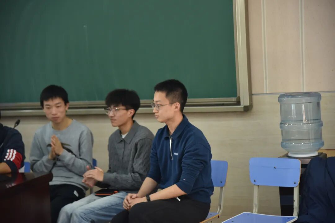 初中会场采用圆桌座谈形式,赵可涵、万翰如、卢卡、赵梓涵、张子勋、张轩翥、赵宇珩、孙卓然、袁培喆、马雨宁、刘宇昊、王岱泽共12位同学参与其中。他们自由分享了自己的大学生活和学习方法,并与在场同学进行了深入的互动,现场气氛轻松活跃。