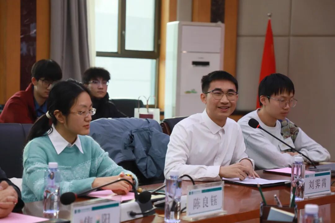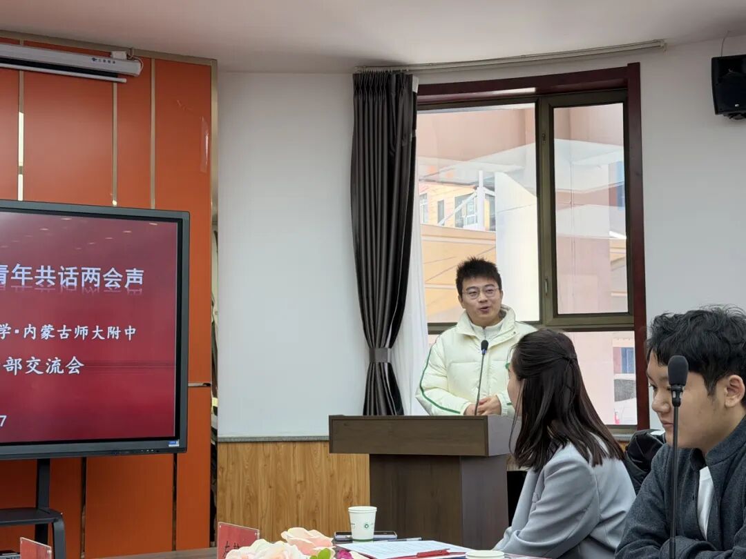 与此同时,陈良钰、孙博、王岱泽、何禹锡等四位学生代表与内蒙古师范大学的团学干部代表开展“青春同心聚合力,青年共话两会声”主题座谈,共同探讨学生工作、学生活动、科技创新等相关话题,并围绕正在进行的两会进行了交流,展现了清华大学“自强不息、厚德载物”的精神底蕴和求真务实、锐意进取的青春风貌。
